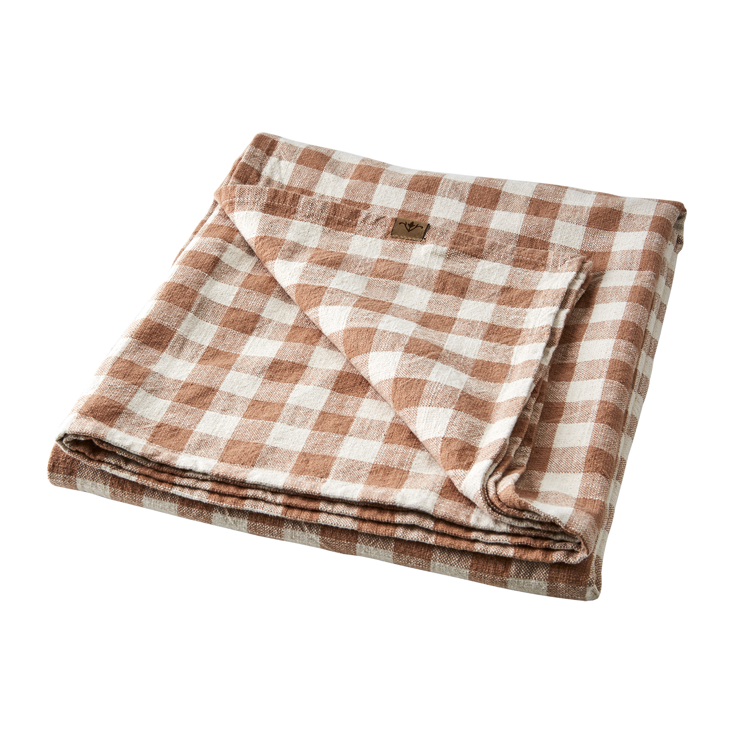 Tämän liinan ruudut ovat ruosteisen ruskeat - tästä saa kauniin  kattauksen ja pehmeää tunnelmaa.