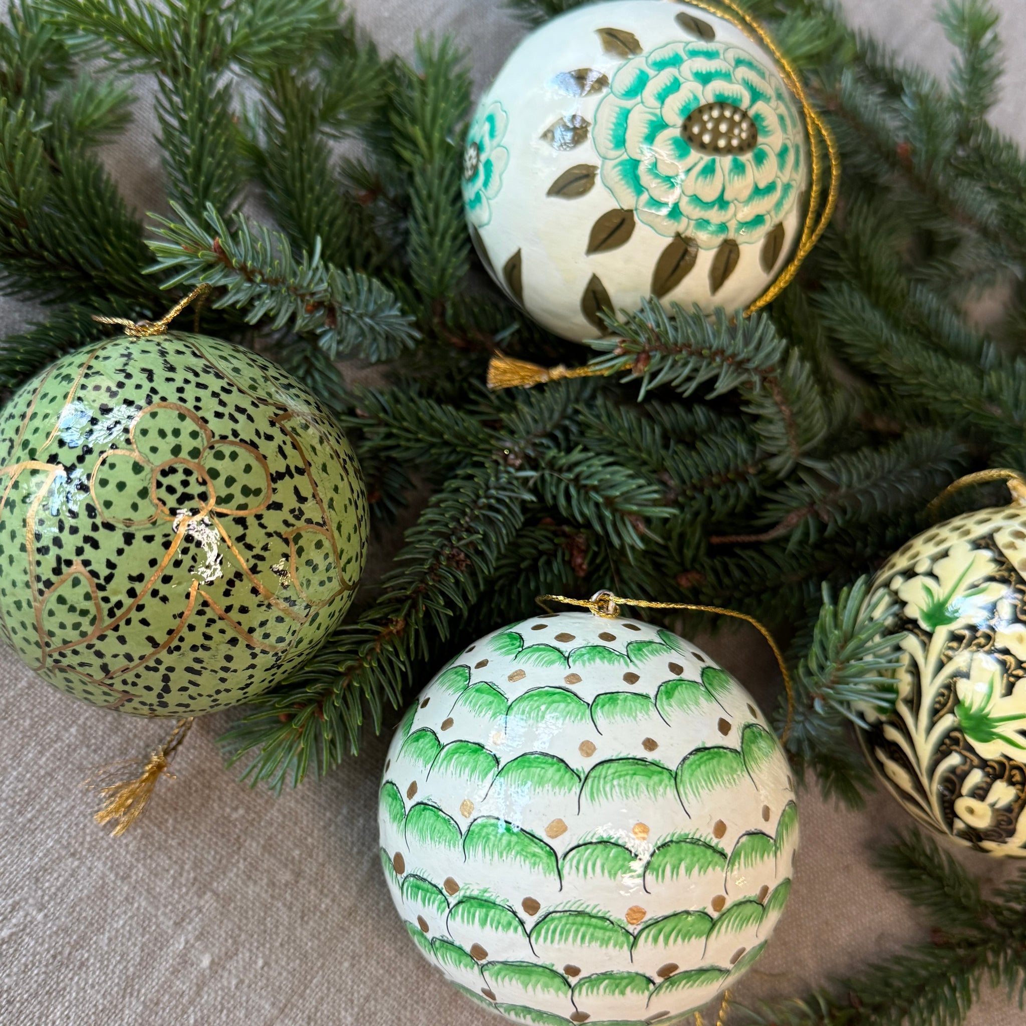 Käsinmaalatut, upeat joulupallot on valmistettu paperimassasta. Ihana punasävyisten pallojen lajitelma. Nämä ovat niin kauniita, että sopivat koristeeksi muutenkin kuin jouluna. Pakattu rasiaan, missä on hyvä säilyttää pallot siistinä.