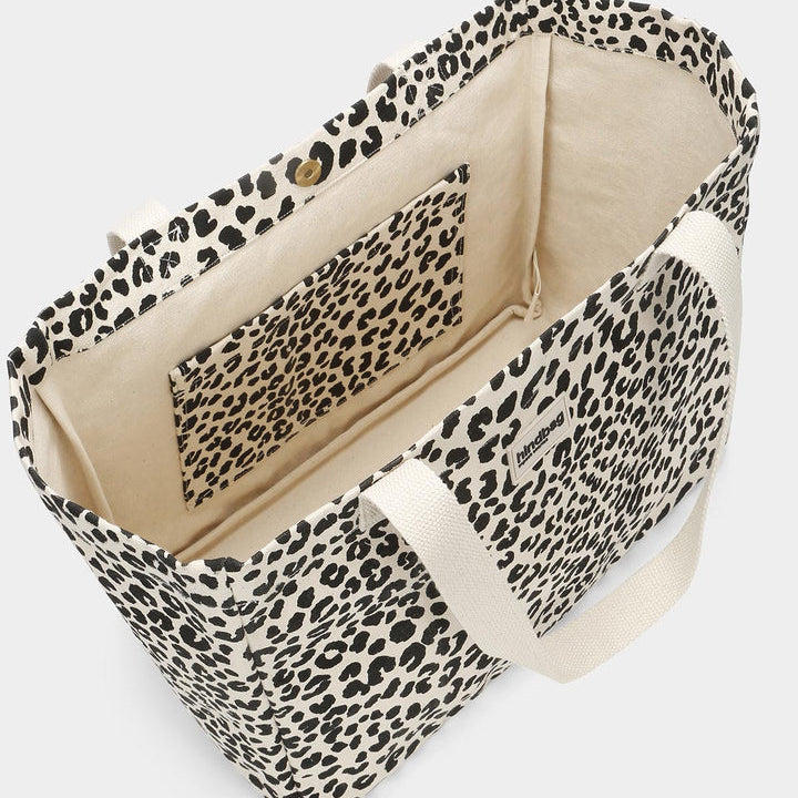 Claude on suuri, uskomattoman käytännöllinen kangaskassi. Käytä sitä olkapäälläsi kaupungilla, torilla, rannalla tai lomalla. Sen magneettinen nepparikiinnitys pitää kaiken turvassa. Sisälle voit sujauttaa tärkeimmät tavarasi, jotta ne pysyvät helposti käden ulottuvilla. Ihastu leopardikuvioon, ikoniseen kuvioon, joka lisää omaperäisyyttä, rohkeutta ja eleganssia.