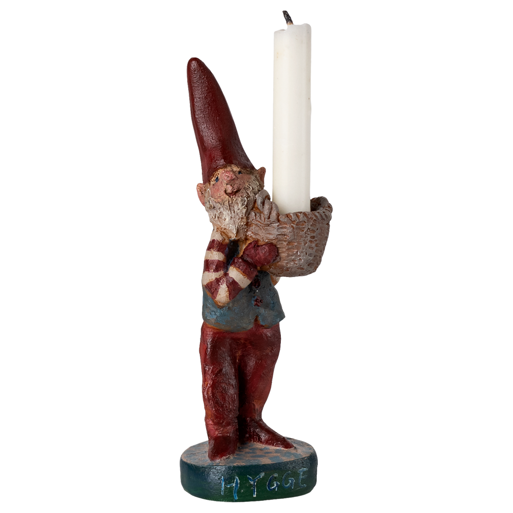 Tämä kyseinen tonttu numero 5 pitelee käsissään koria, johon voi laittaa vaikkapa pienen kynttilän.