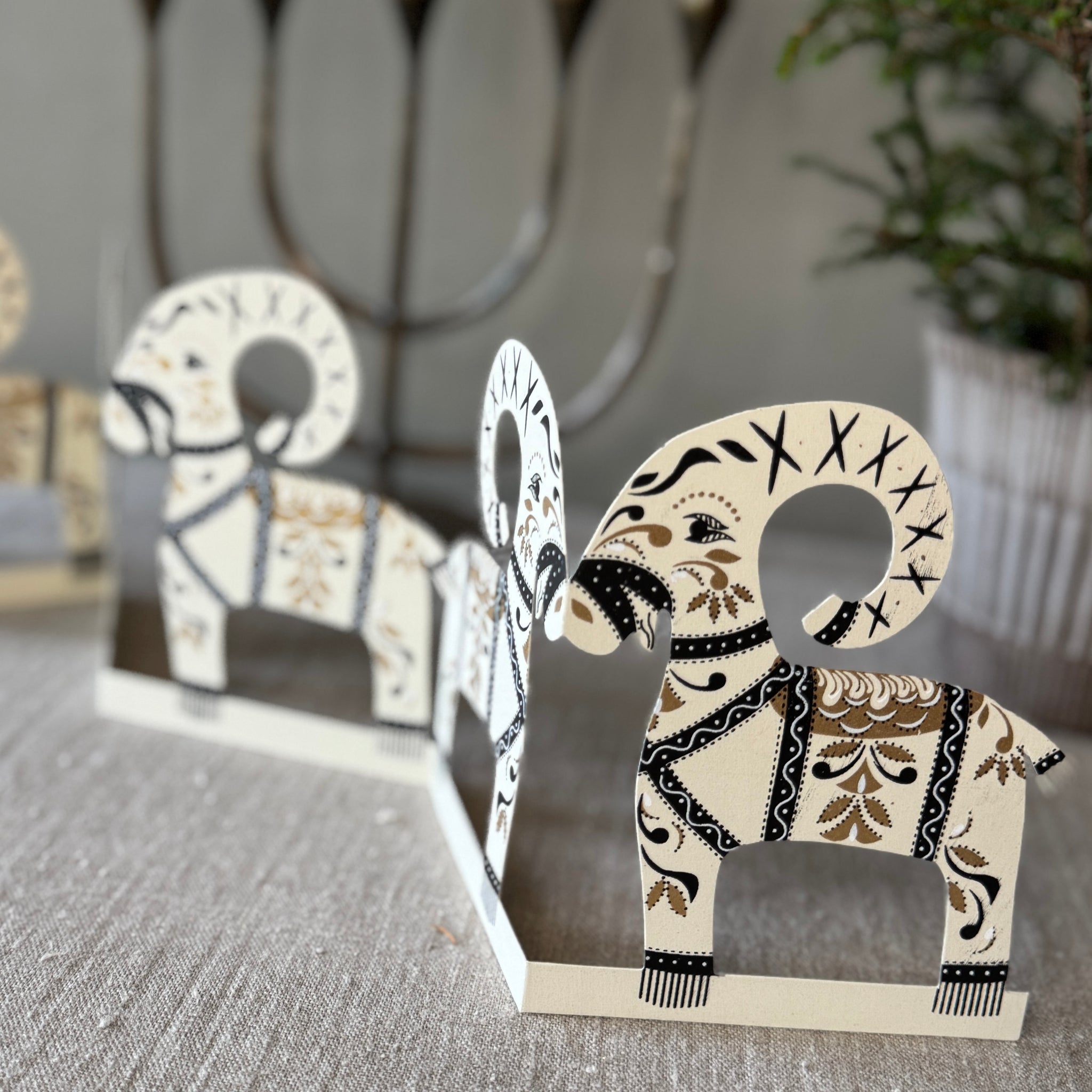 Tyylikäs mustavalkoinen paperikoriste. Ihanat yksitysikohdat ja kultahileinen koristelu.