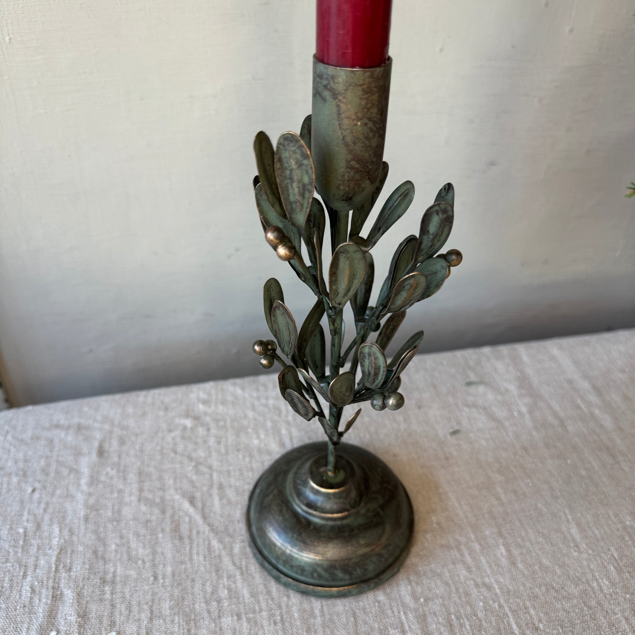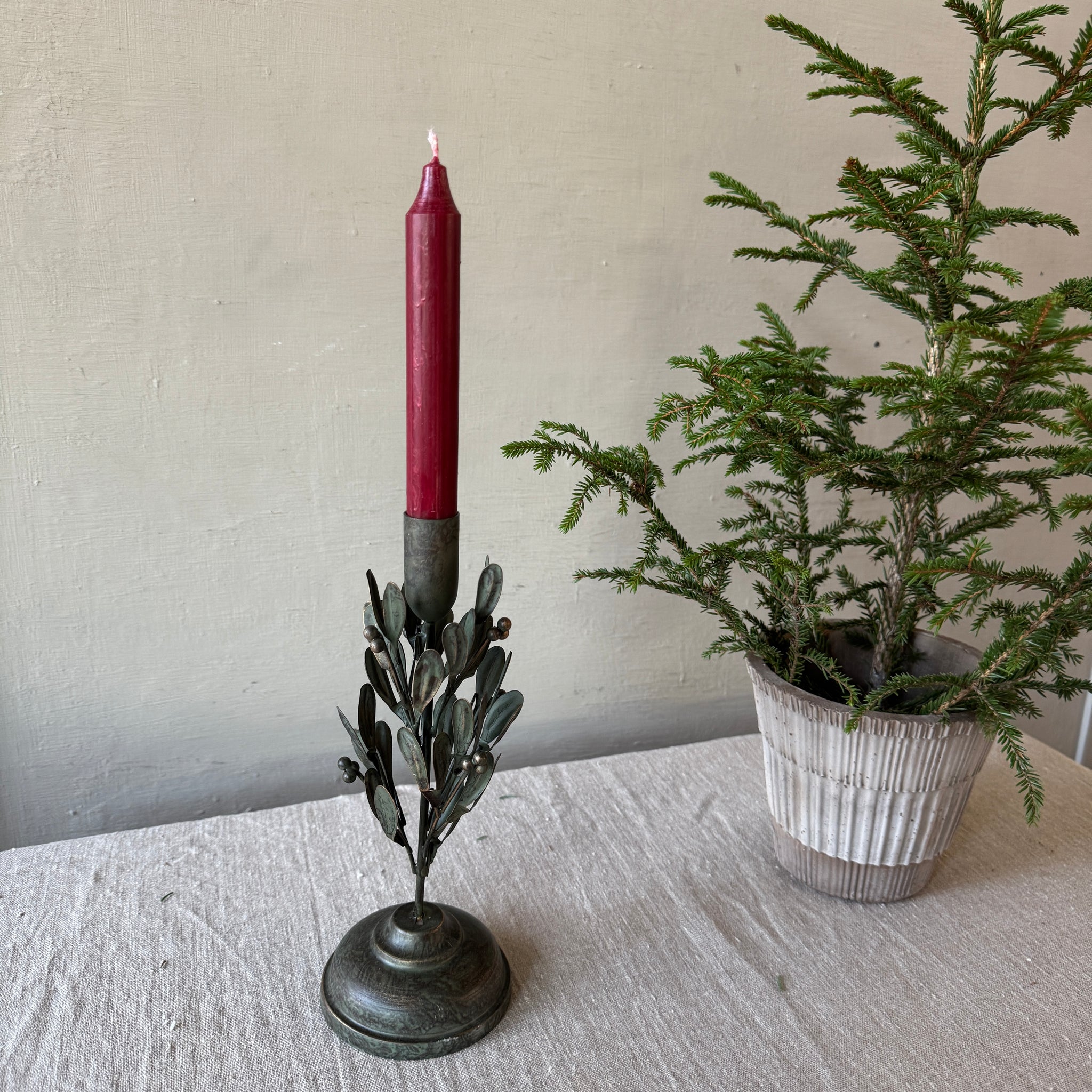 Kaunis kynttilänjalka, josta huokuu vanhanajanhenkeä.