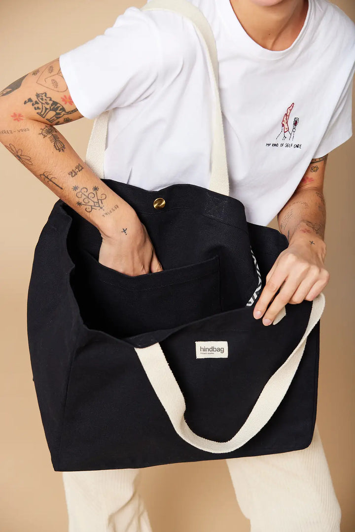 Ranskalainen Hindbag on sitoutunut kestävään ja eettiseen muotiin vuodesta 2015 lähtien. Laukut ja asusteet on valmistettu GOTS-sertifioidusta luomupuuvillasta tai GRS-merkitystä kierrätysvillasta, ja ne valmistetaan kansalaisjärjestössä, joka pyrkii voimaannuttamaan naisia kouluttamalla heitä ompelussa ja maksamalla heille oikeudenmukaista palkkaa.