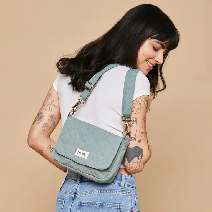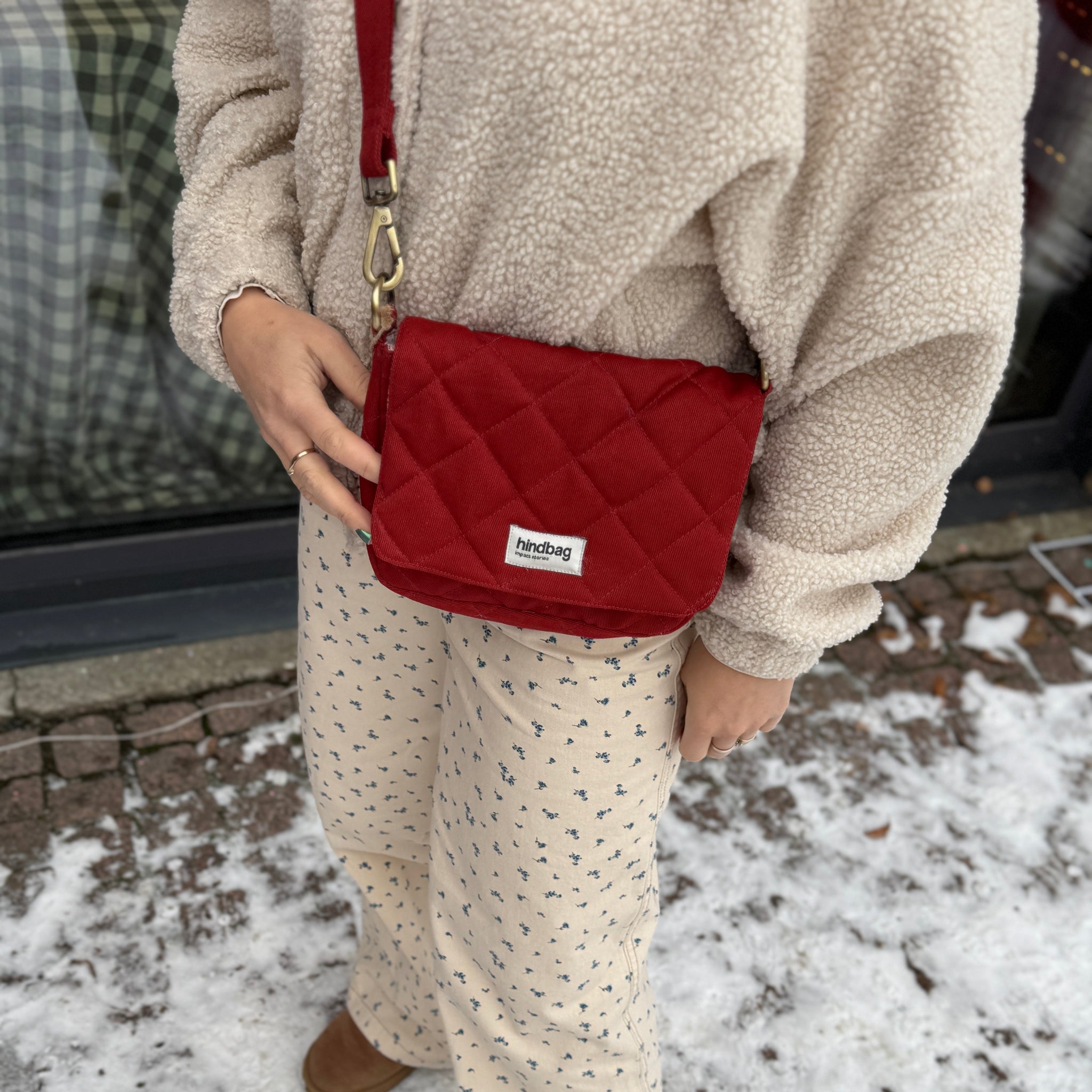 Ranskalainen Hindbag on sitoutunut kestävään ja eettiseen muotiin vuodesta 2015 lähtien. Laukut ja asusteet on valmistettu GOTS-sertifioidusta luomupuuvillasta tai GRS-merkitystä kierrätysvillasta, ja ne valmistetaan kansalaisjärjestössä, joka pyrkii voimaannuttamaan naisia kouluttamalla heitä ompelussa ja maksamalla heille oikeudenmukaista palkkaa.