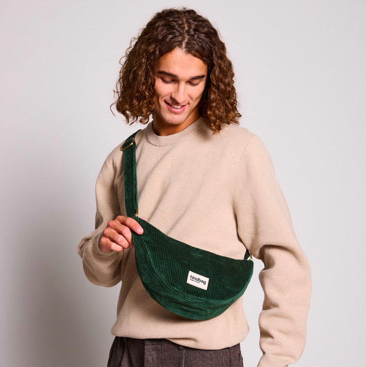 Puolikuun muotoinen Andrea-laukku on yhdistelmä vyölaukua ja lähettilaukkua. Sen GOTS-sertifioitu luomusametista valmistettu kangas ja yksivärinen vuori pitävät tärkeimmät tavarasi turvassa. Yläaukon ja vetoketjullisen takataskun ansiosta se on superkäytännöllinen, ja tyyli sopii mihin tahansa tilaisuuteen. Voit käyttää sitä lyhyenä tai pitkänä olkalaukkuna, edessä tai takana tai olkapään yli. Saatavilla useissa väreissä. Valitse mintunvihreä sametti, tämän syksyn ehdoton hankinta!