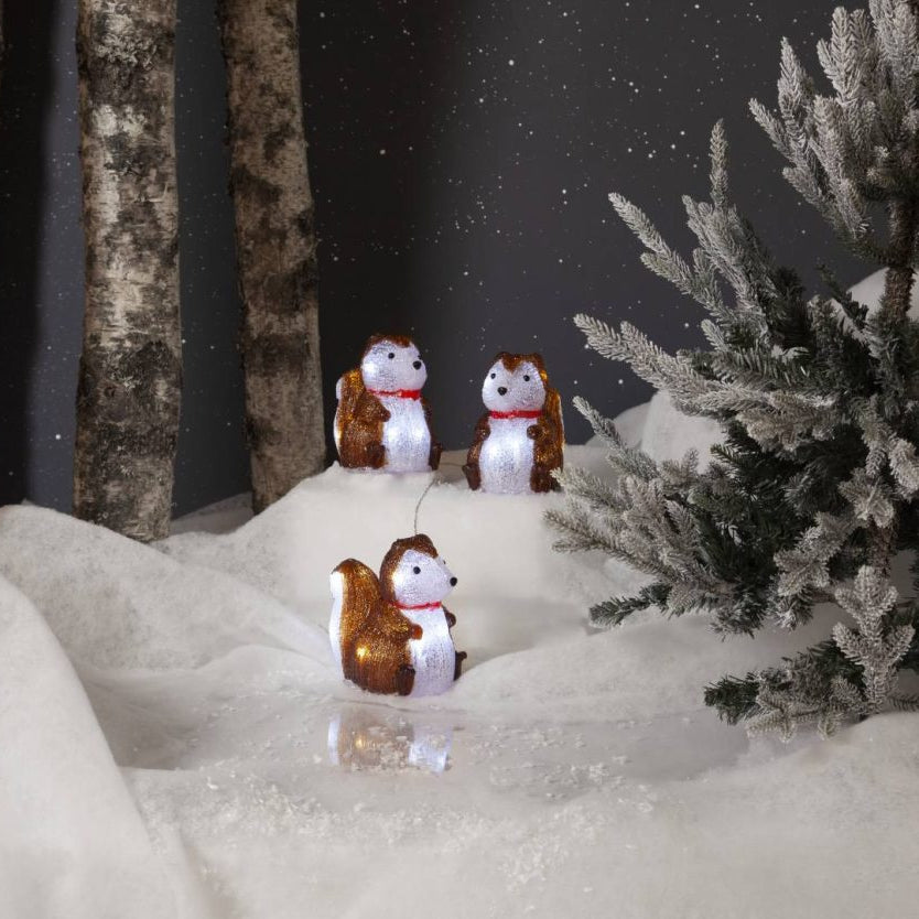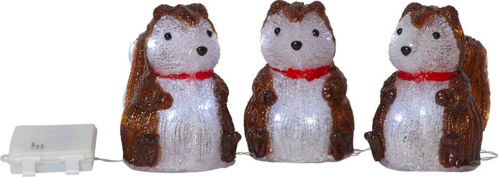 Ulko- ja sisäkäyttöön sopiva 1.2 m pitkä valosarja oravahahmoilla.