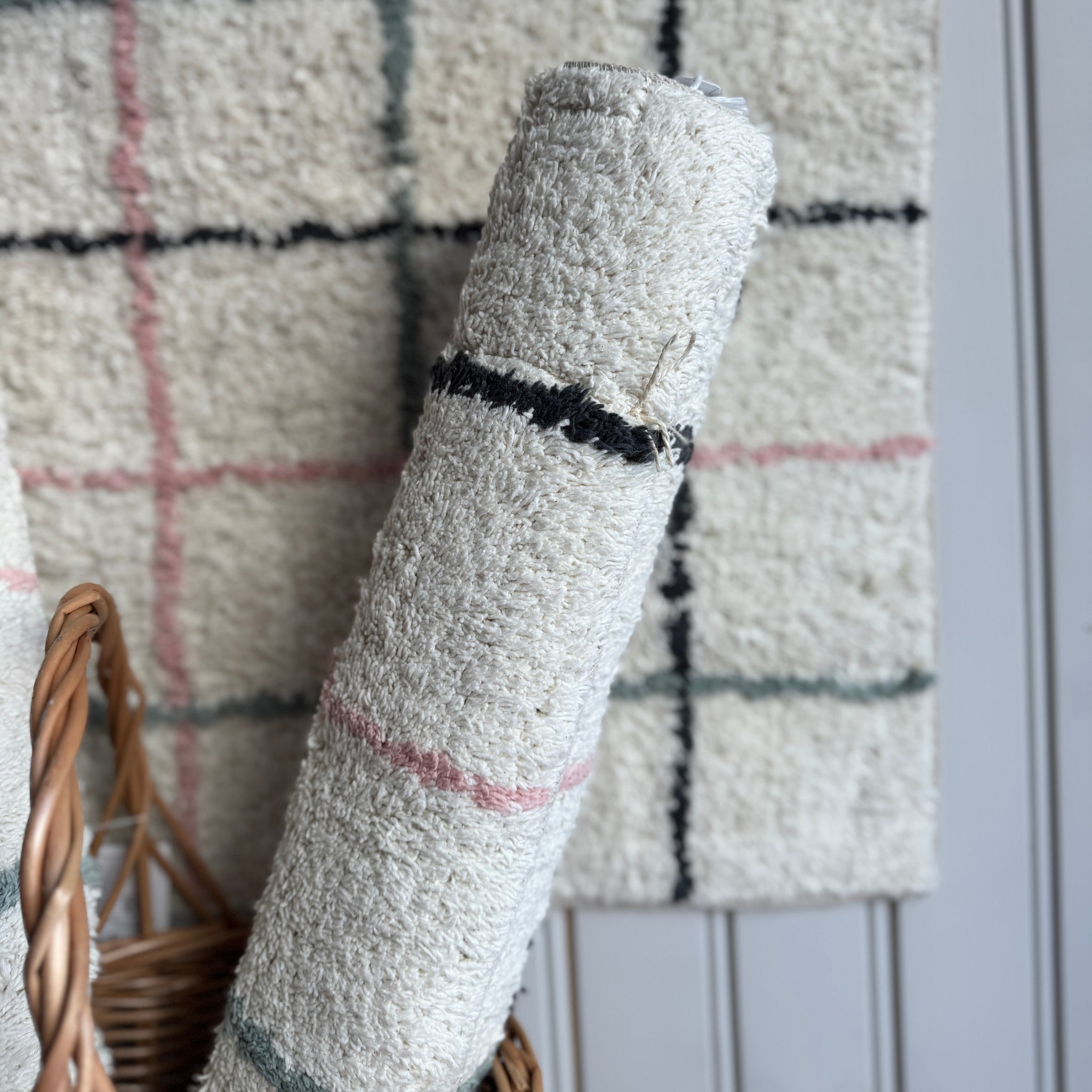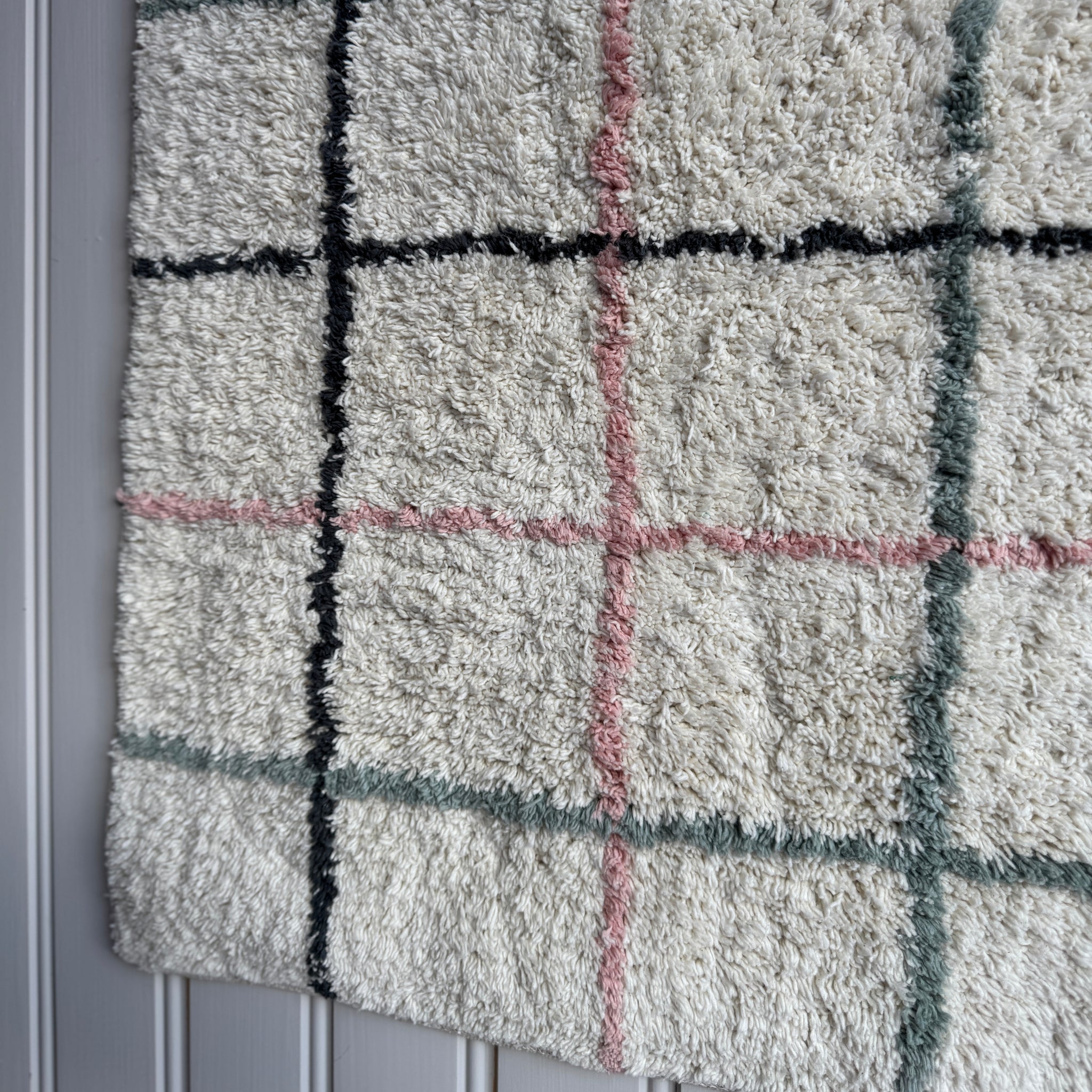 Kotoisa ruutukuvioinen puuvillanukkamatto kylpyhuoneeseen tai vessaan. Koko 60 cm x 90 cm. Väri luonnonvaalea/savunsininen. Materiaali...