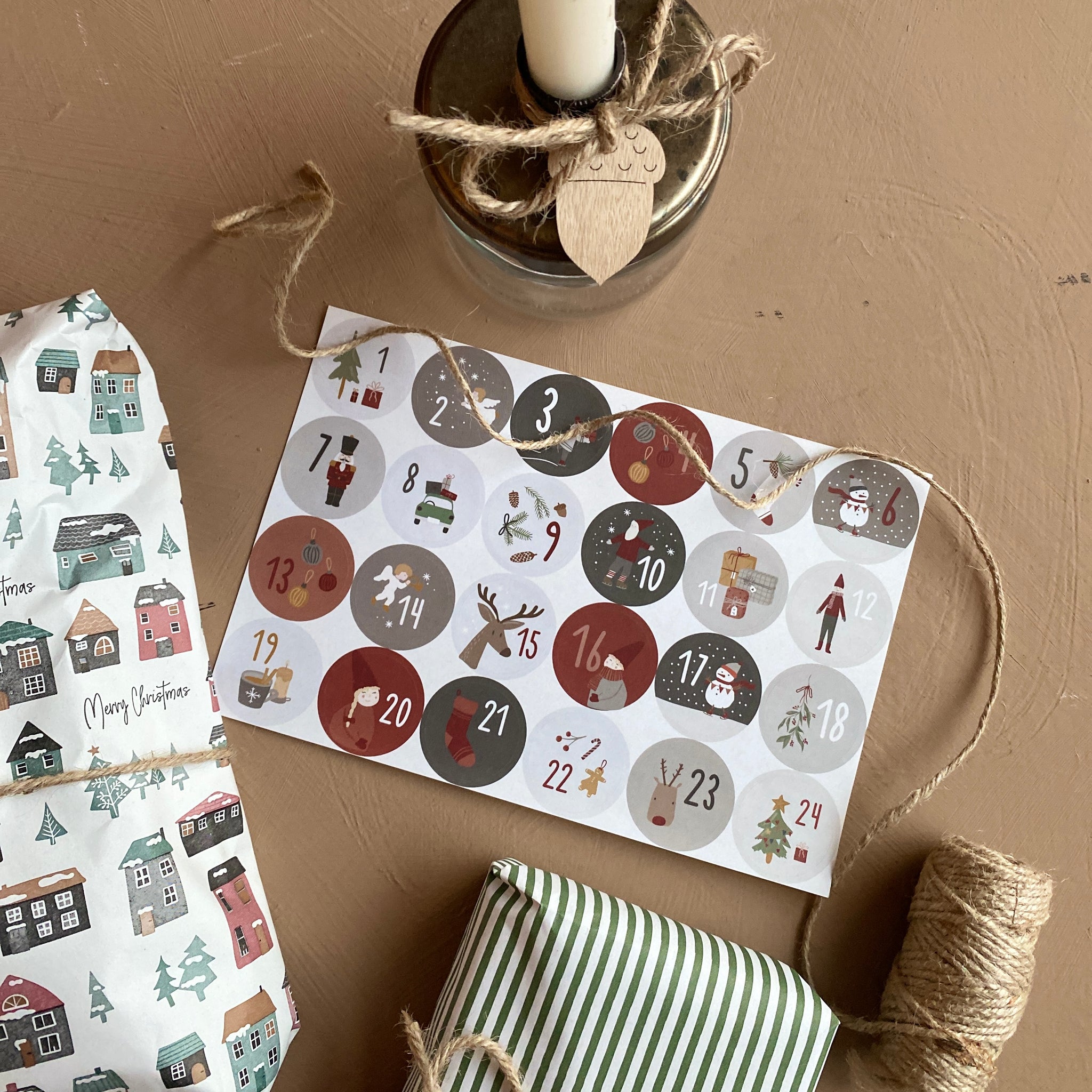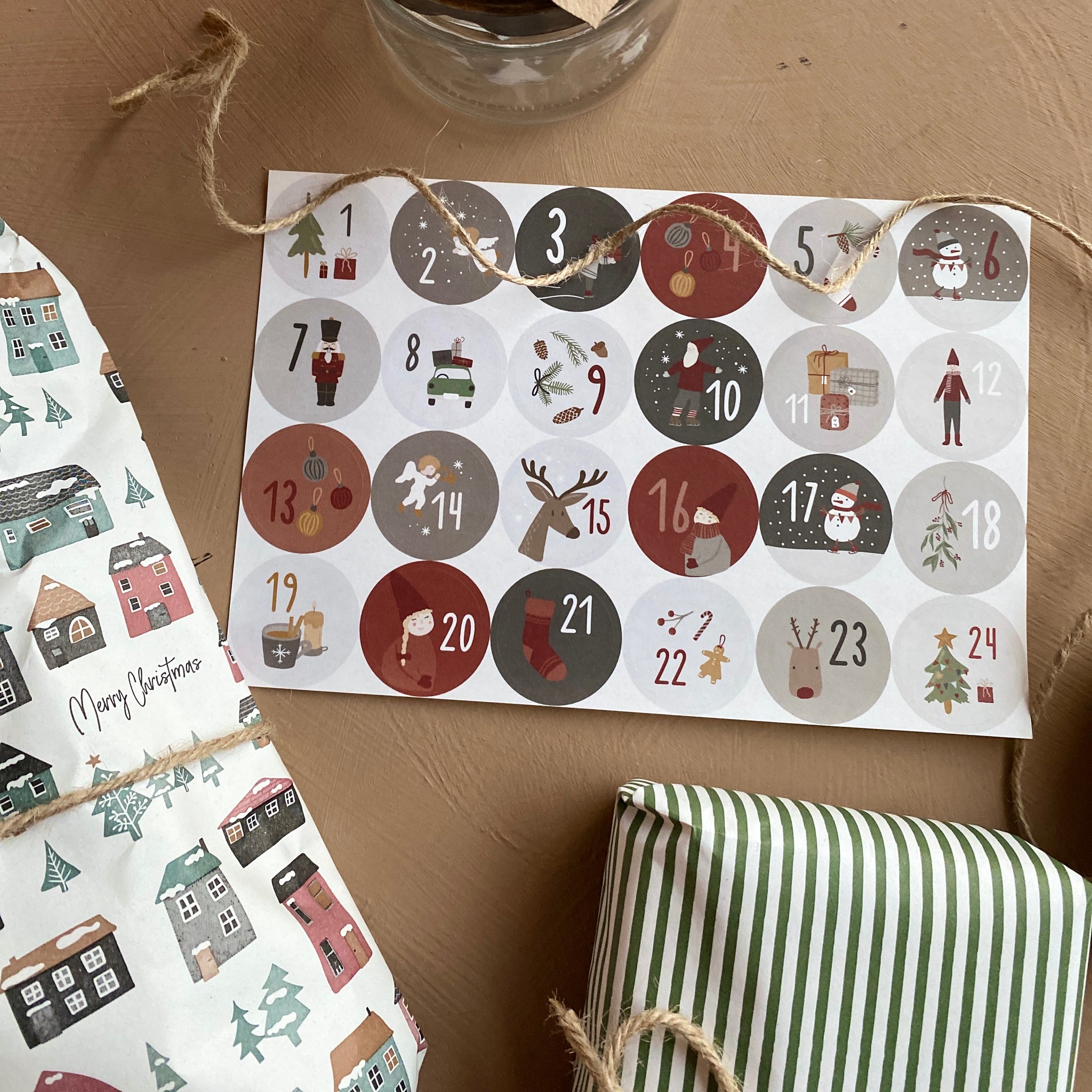 Jouluiset kalenteritarrat - mainiot itsetehtyyn joulukalenteriin. Numerot 1-24.