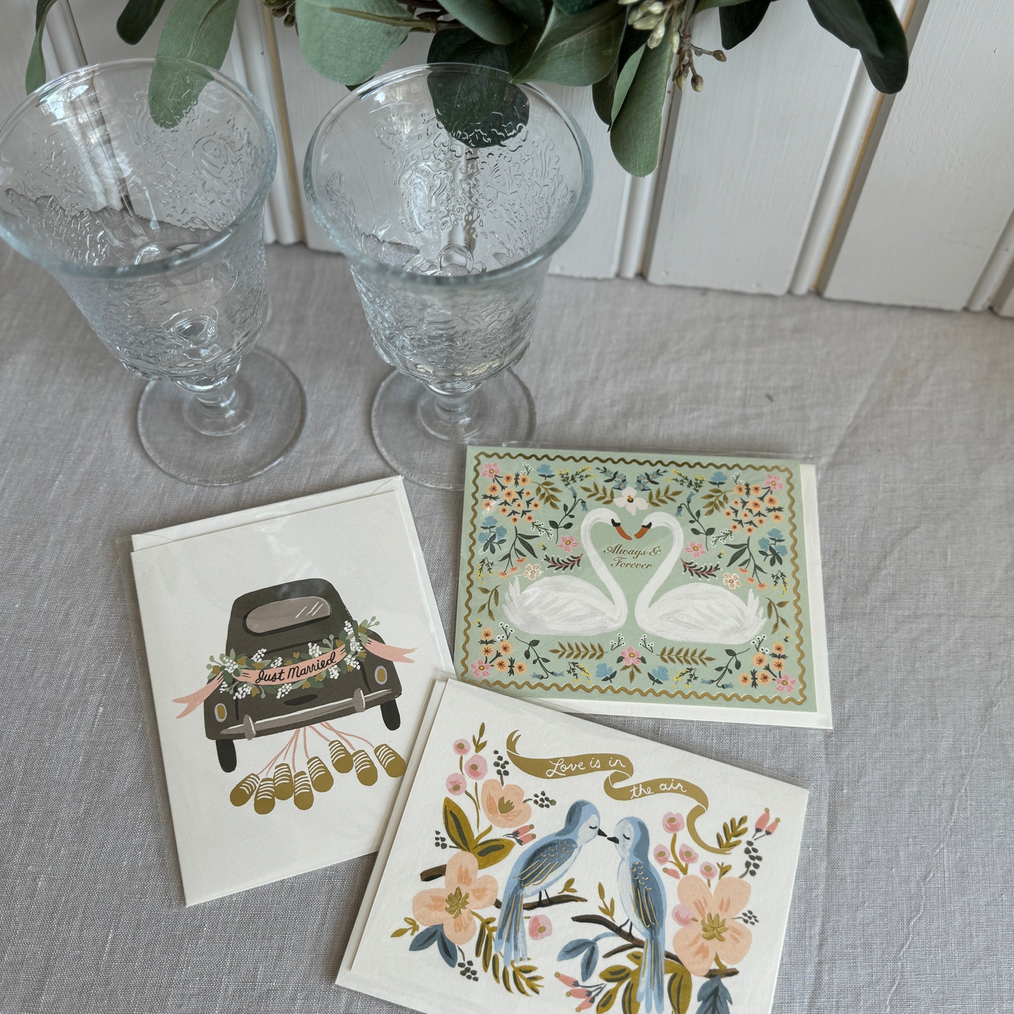 Kaunis kaksiosainen kortti hää- tai kihlaparille.