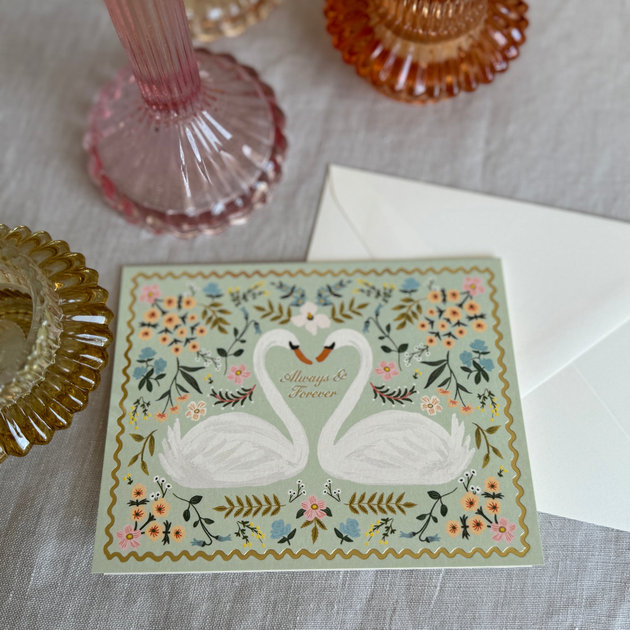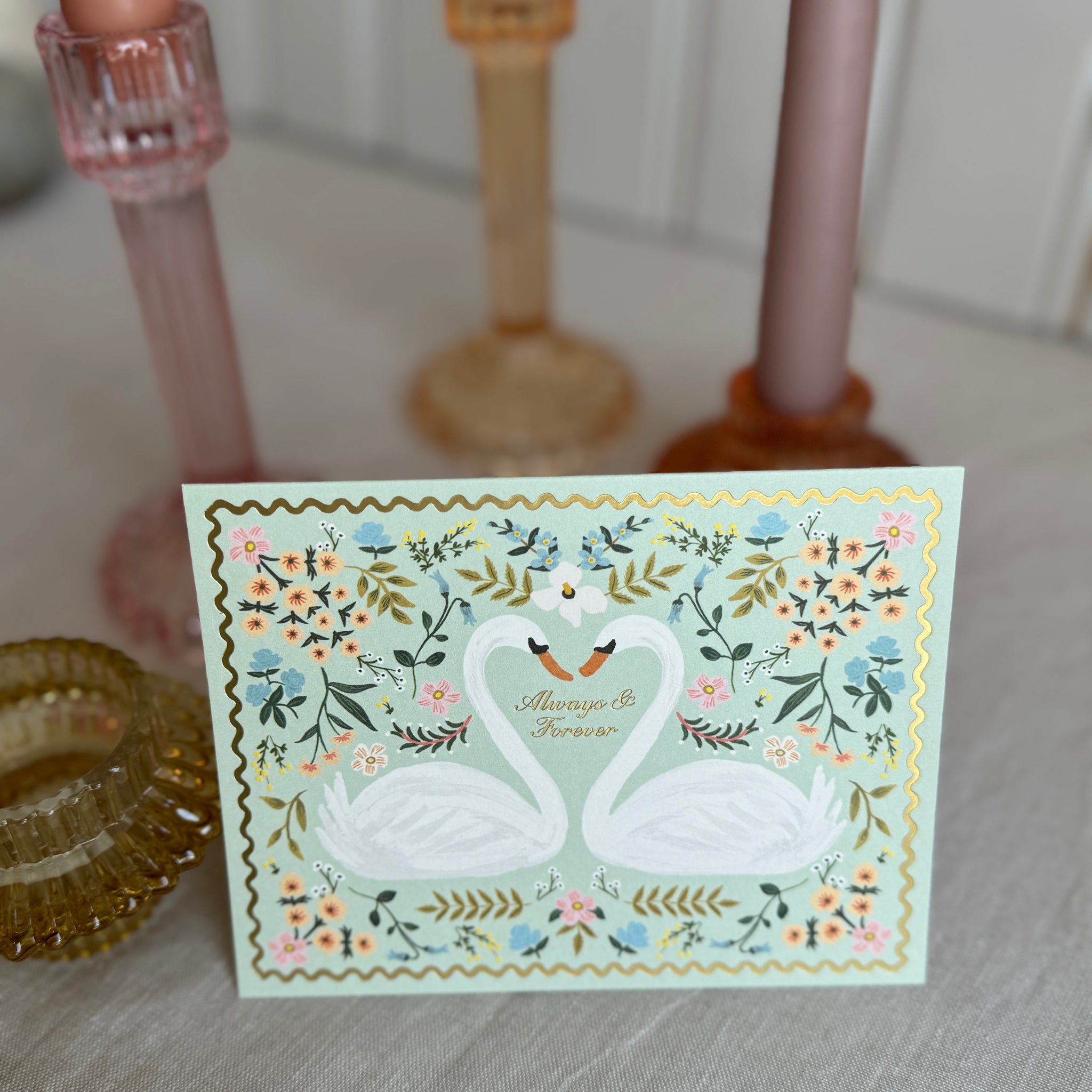 Laadukkaasti painetun 2-osaisen kortin mukana tulee valkea kirjekuori.