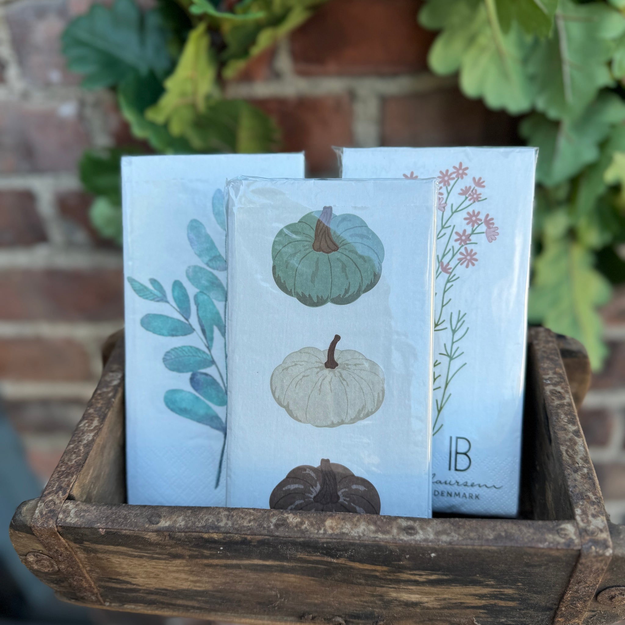 Syksyiset kurpitsakuvioiset paperiservetit.