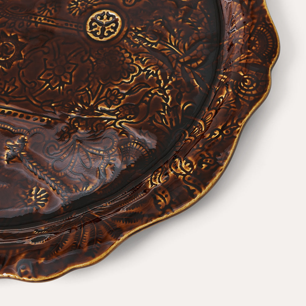 Huikean kaunis tarjoiluvati. Tämä malli toimii myös pitsalautasena sekä kakkuvatina Sthål -mallistossa. Yksilöllinen lasitus ja kuviointi viehättävät ja antavat inspiraation kattaukseen. Tarjoilulautasen halkaisija noin 34 cm, korkeus 3 cm.