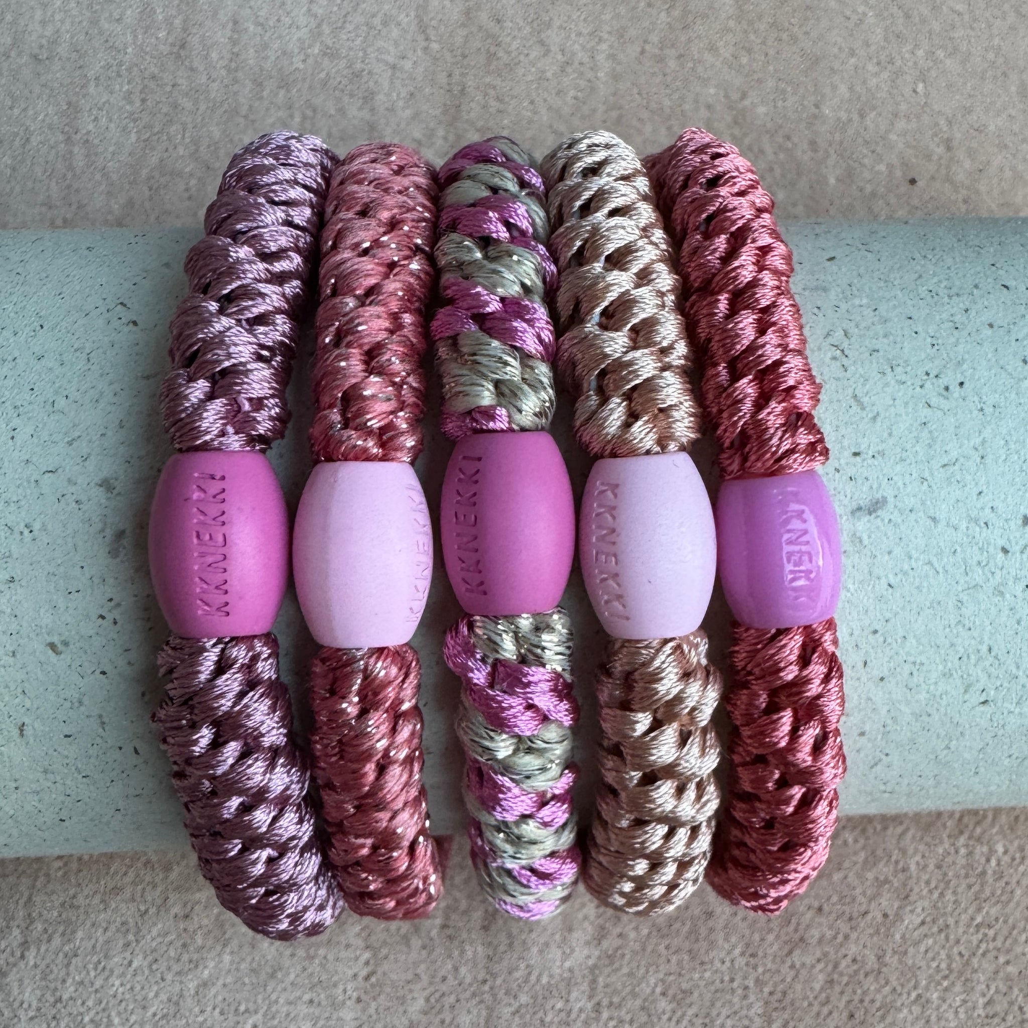 Jokainen KKNEKKI-hiuslenkki on huolellisesti käsintehty yli 60 yksittäisestä langasta, jotka on kudottu taidokkaasti luomaan tuotteen, joka on sekä uskomattoman kestävä että hellävarainen kaikille hiustyypeille. Tämä monimutkainen kudontatekniikka luo joustavan ja pehmeän lenkin, joka pitää muotonsa ja joustavuutensa – samalla estäen hiusten katkeilua, nyppimistä ja rypistymistä.