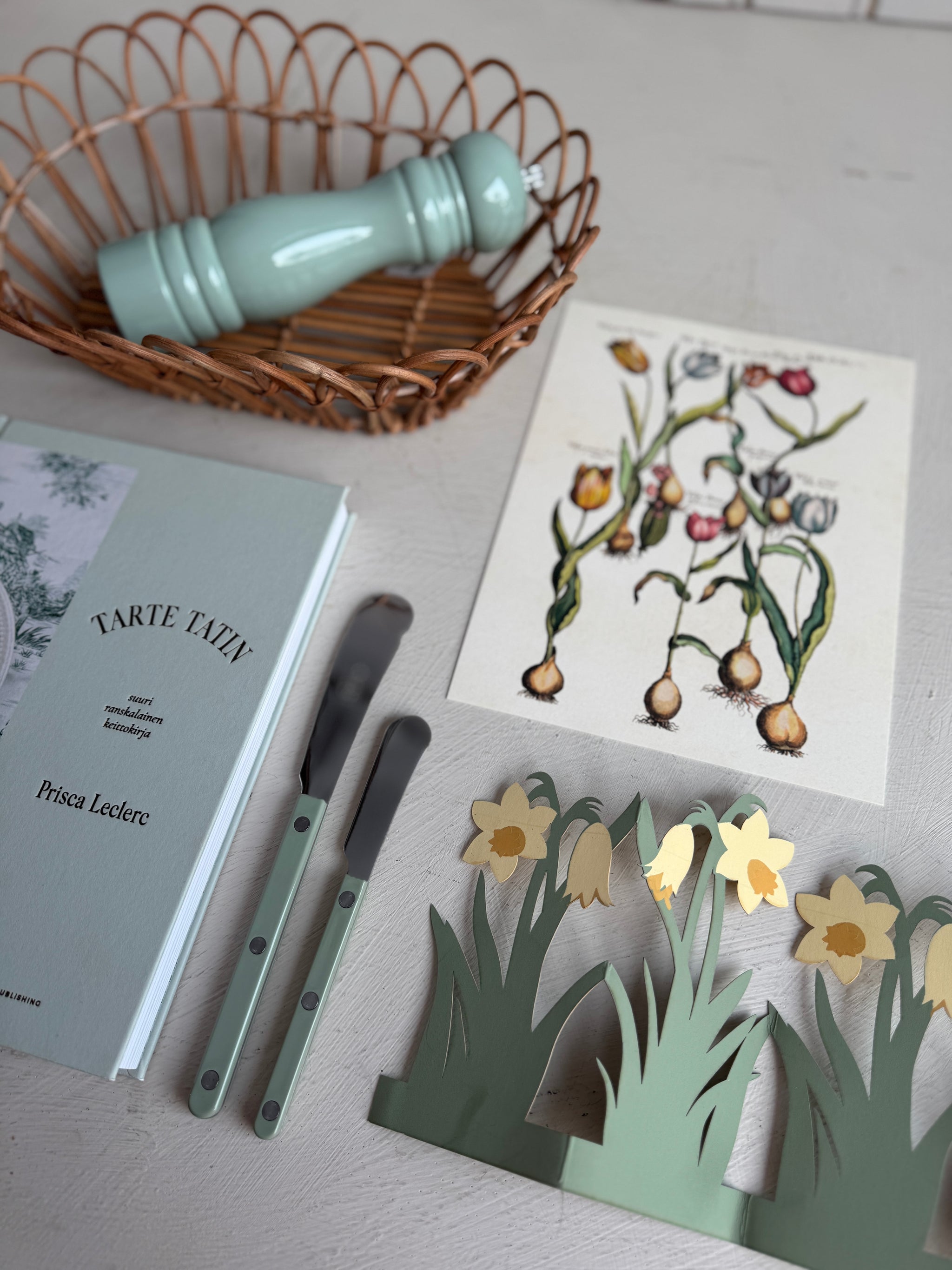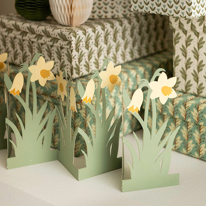 Niin kaunis koristenauha keväisillä narsisseilla. Ehkäpä tämän kevään kaunein koriste.