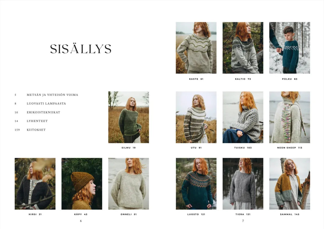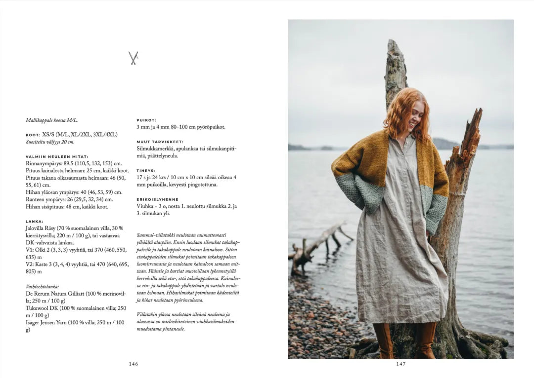 Luonnon monimuotoisuudesta ammentavat ohjeet, neulepaidat ja -takit sekä asusteet antavat langan loistaa, keskittyen tekstuuriin, rakenteeseen ja harkittuun kokonaisuuteen. Kirjassa käytetyt nykyaikaiset tekniikat, ylhäältä alas -tyyli ja viimeistellyt yksityiskohdat takaavat, että neulominen on nautinnollista ja lopputulos miellyttävä. Teoksen sydämenä on alkuperäisrotu suomenlampaan villa: kestävä ja persoonallinen kuitu, jolla on vahvat kotimaiset juuret. Mukana on myös vinkkejä lankojen vaihtamiseen rustiikkisen villan tunnun puikoilla säilyttäen.