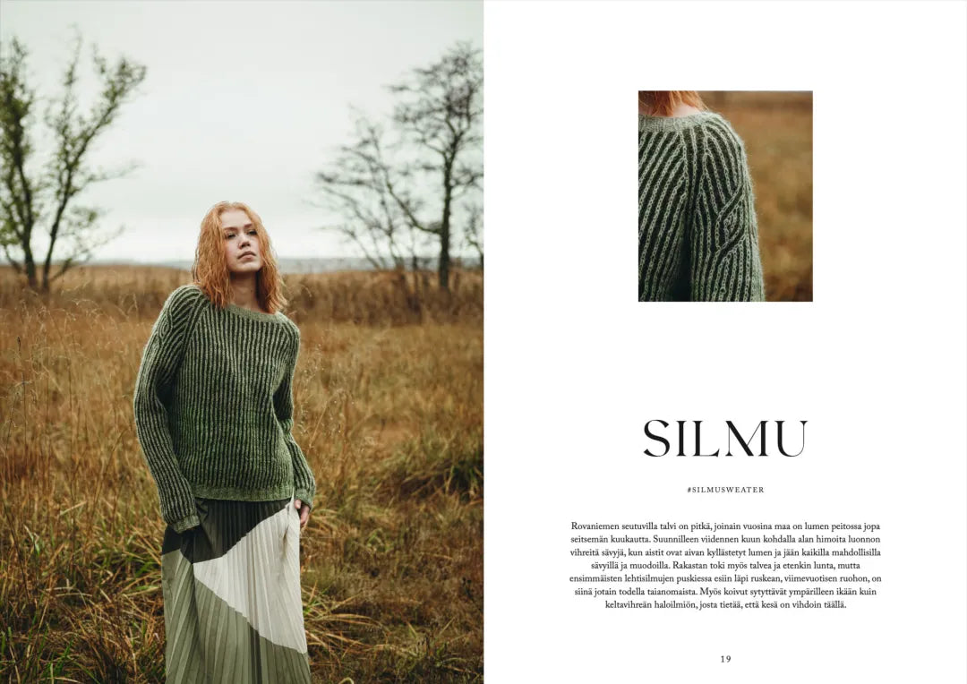 Hidasta tahtia neulomalla. Näiden kansien välistä poimit mukaasi silmukka silmukalta versovaa hiljaista iloa ja pohjatuulen hyväilemän metsän inspiroivaa voimaa.